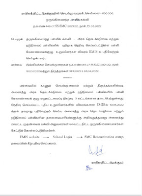 *அரசு தொடக்கநிலை மற்றும் நடுநிலைப்பள்ளிகளில்* புதிதாக தெரிவு செய்யப்பட்டுள்ள பள்ளி மேலாண்மைக்குழு உறுப்பினர்கள் விவரம் EMIS ல் பதிவேற்றம் செய்தல் -சார்பு