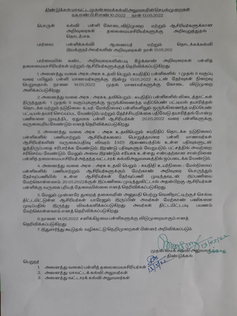 திண்டுக்கல், கிருஷ்ணகிரி முதன்மைக் கல்வி அலுவலர் அவர்களின் செயல்முறைகள்